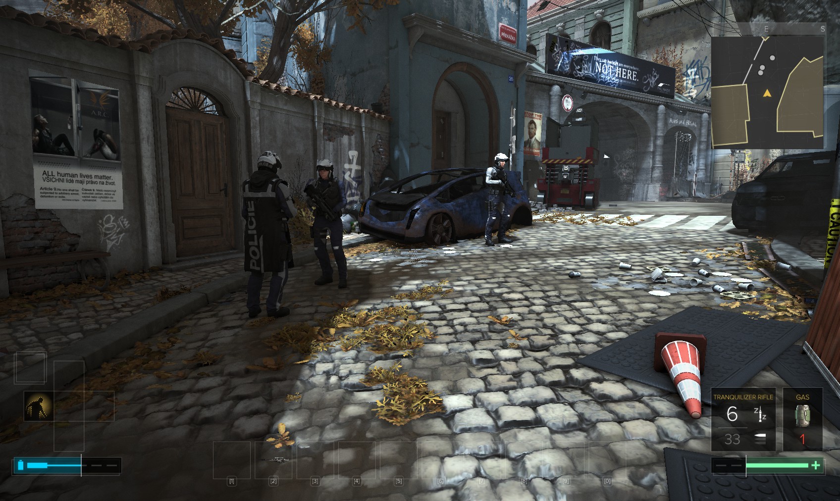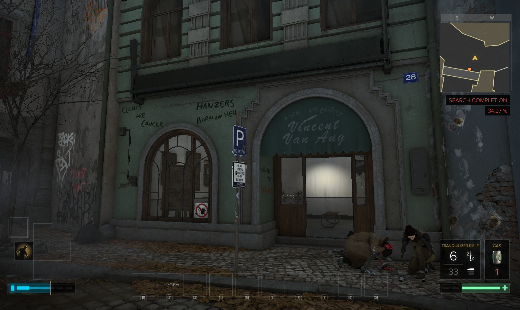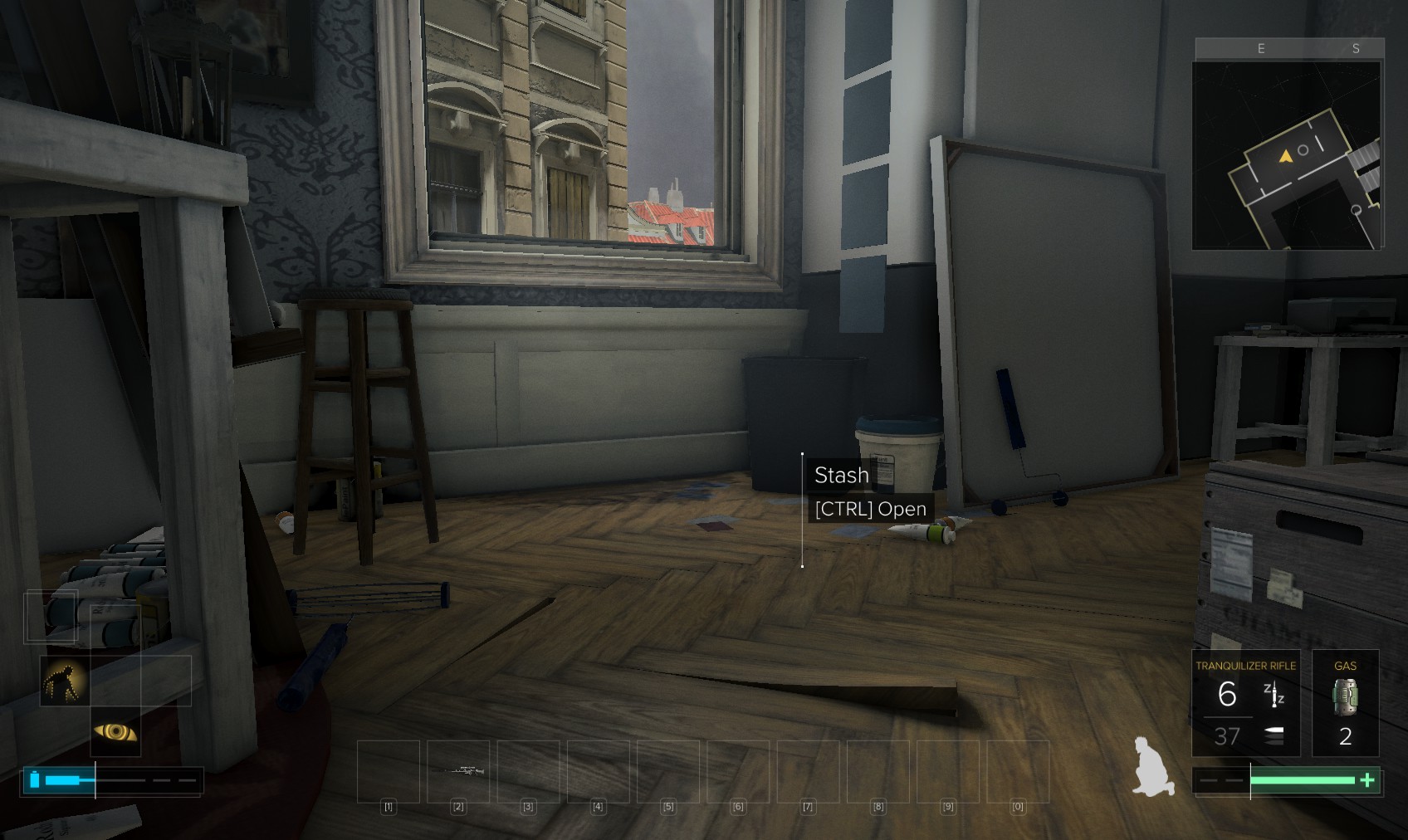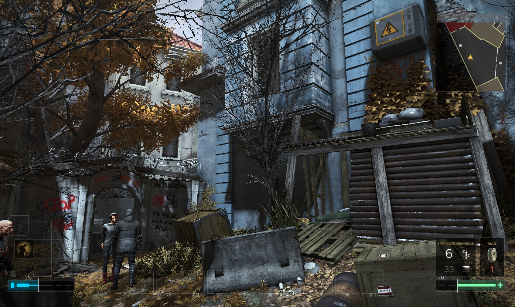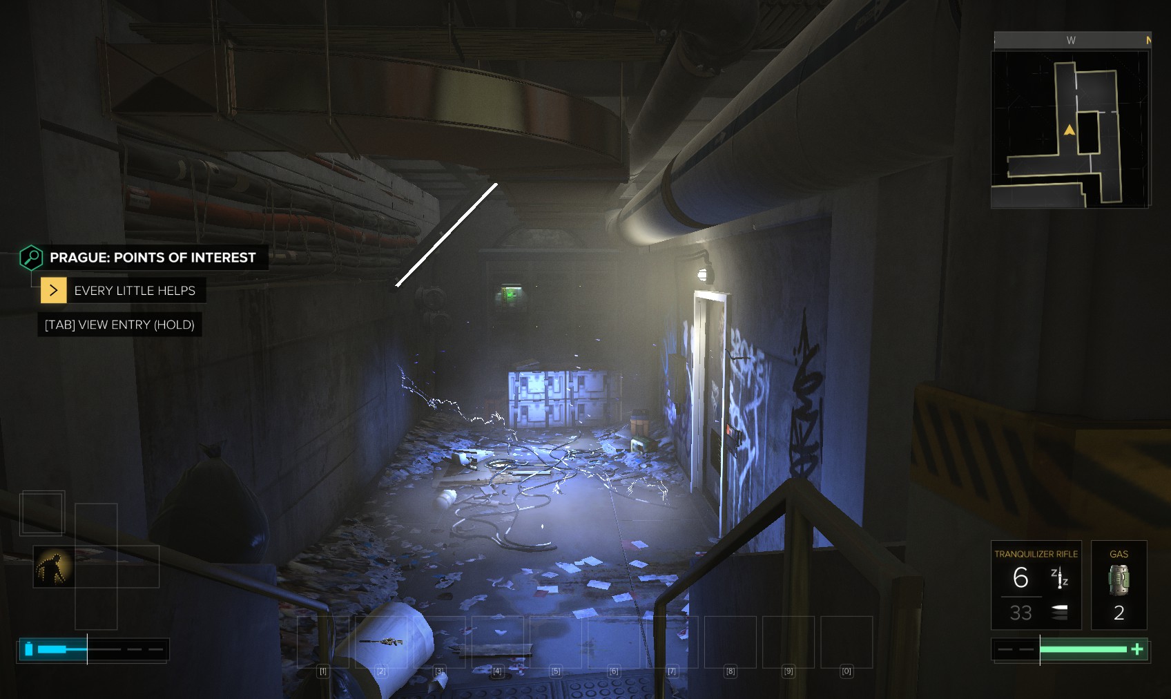 Go upstairs and visit Tars if you want to sell anything off to make space, and then go to apartment 32. The door is unlocked, and a very unhappy - and uncommunicative - gentleman (Olivier Berthelot) is inside. Add insult to injury by raiding his stuff and hacking the level 4 PC for 150XP (just background emails here). What you’re really after is the stash under the window, in particular the Praxis kit. Maybe they’re not his, and he never knew it was there…