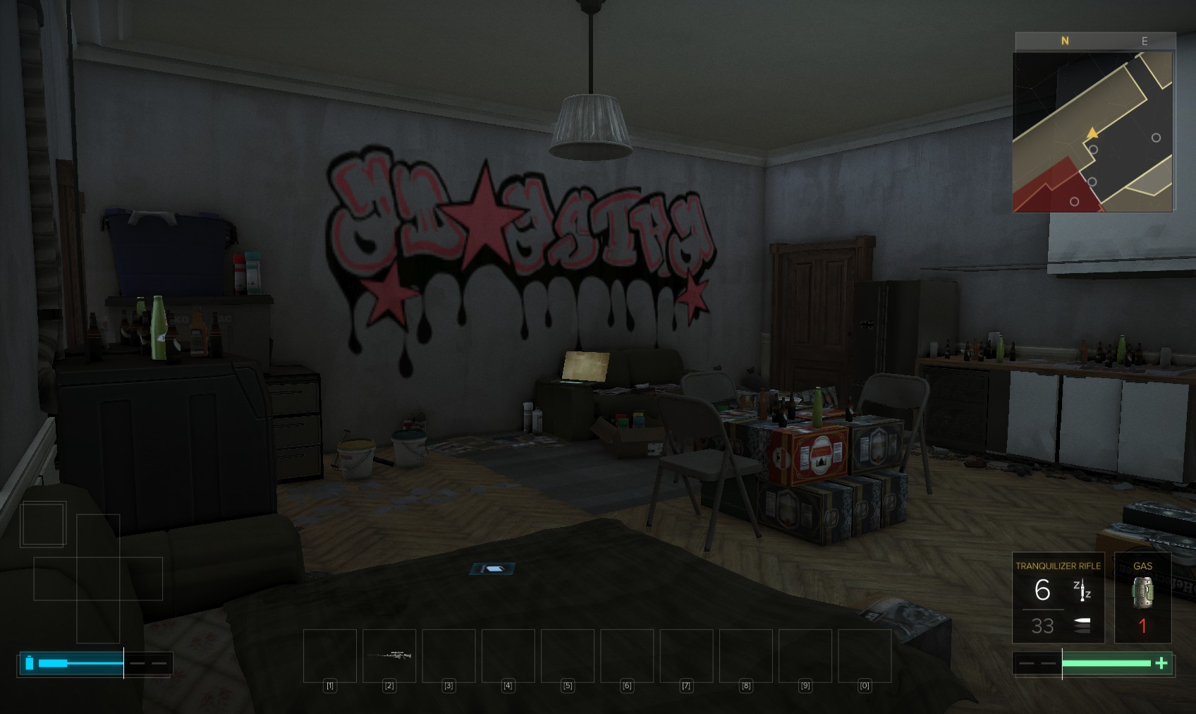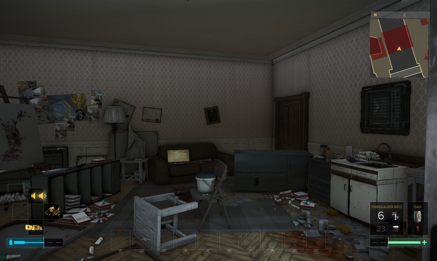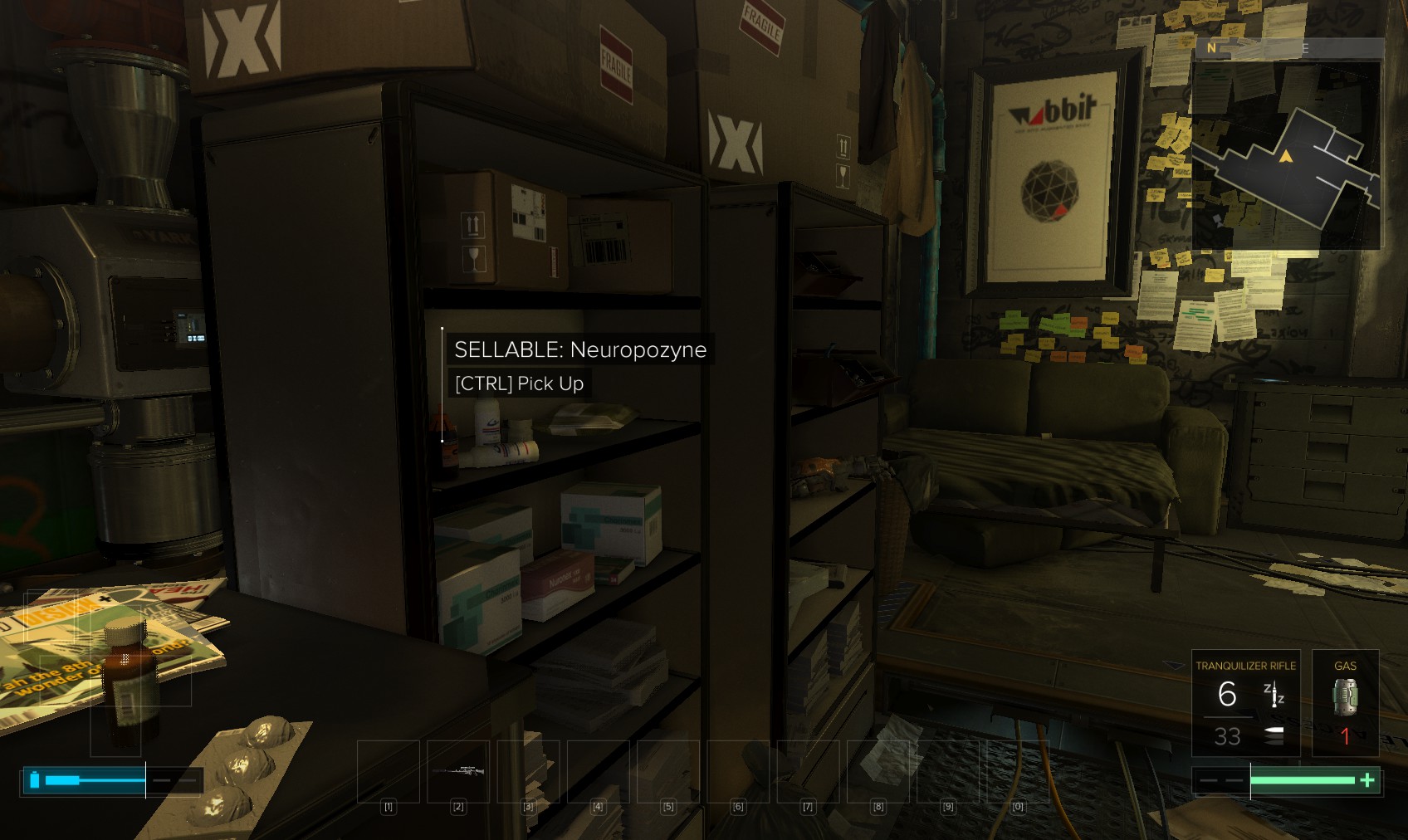 5. Hunt round your appartment to find ammo, crafting parts, sellable items, credits, painkillers, a biocell and a