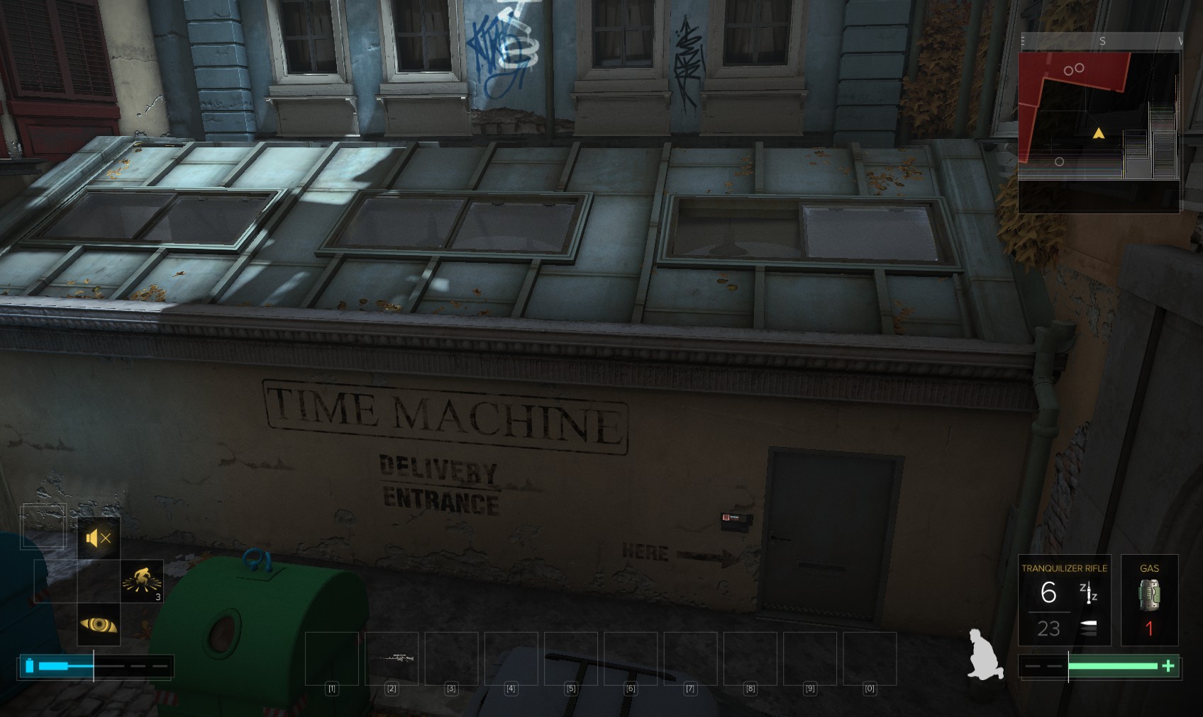 97. Leave by climbing the crates and opening the window onto the street above. Go into your apartment complex opposite.