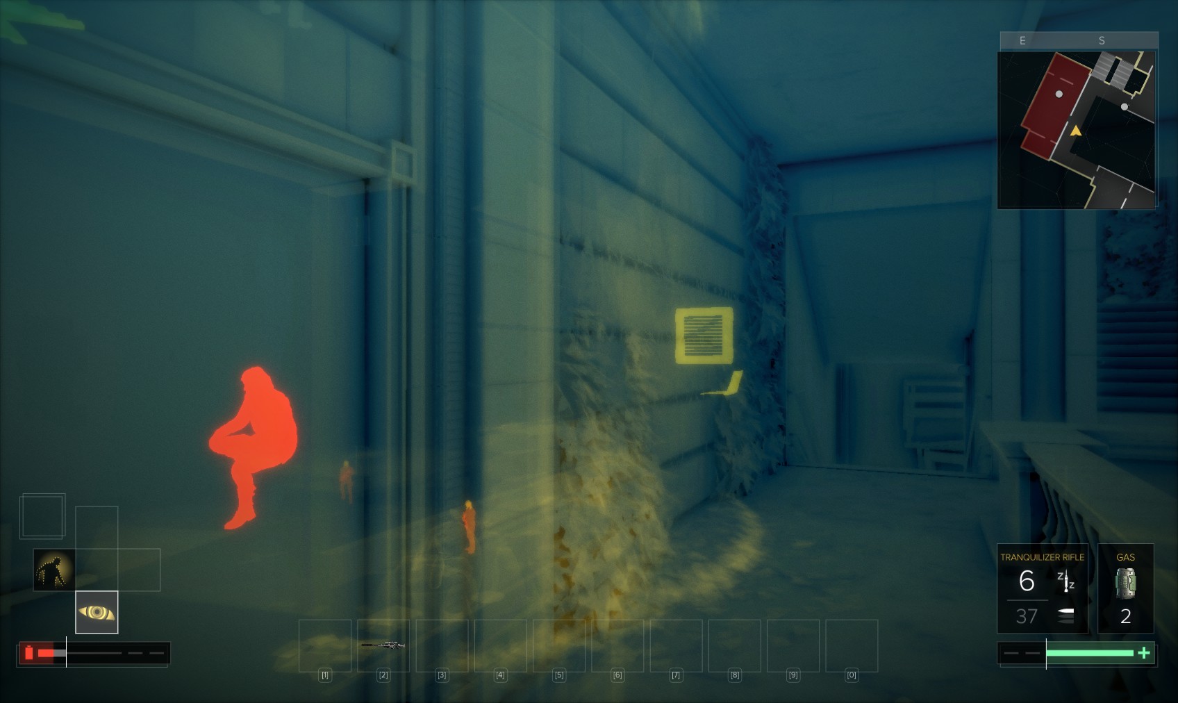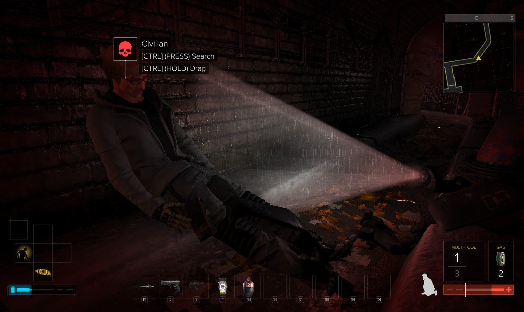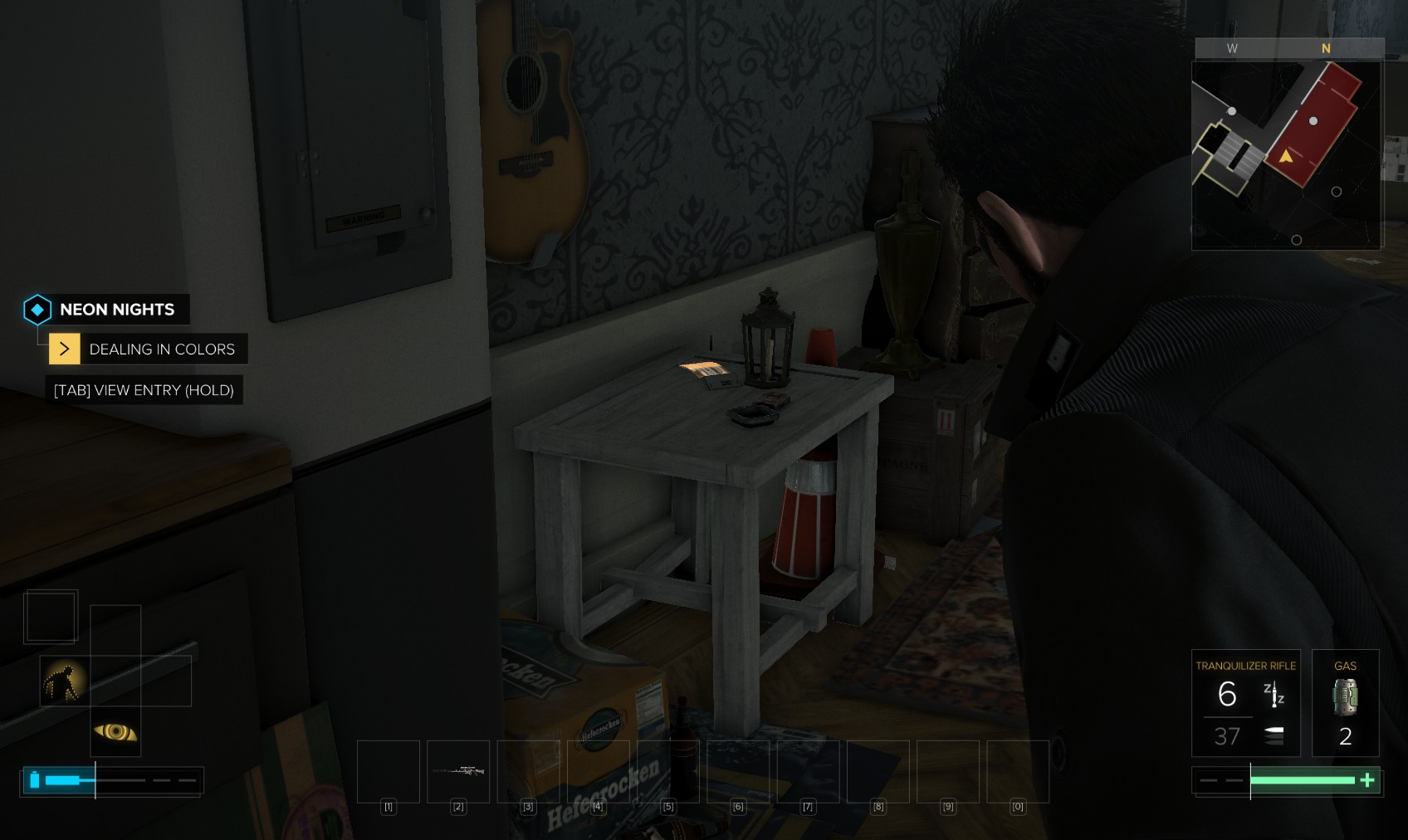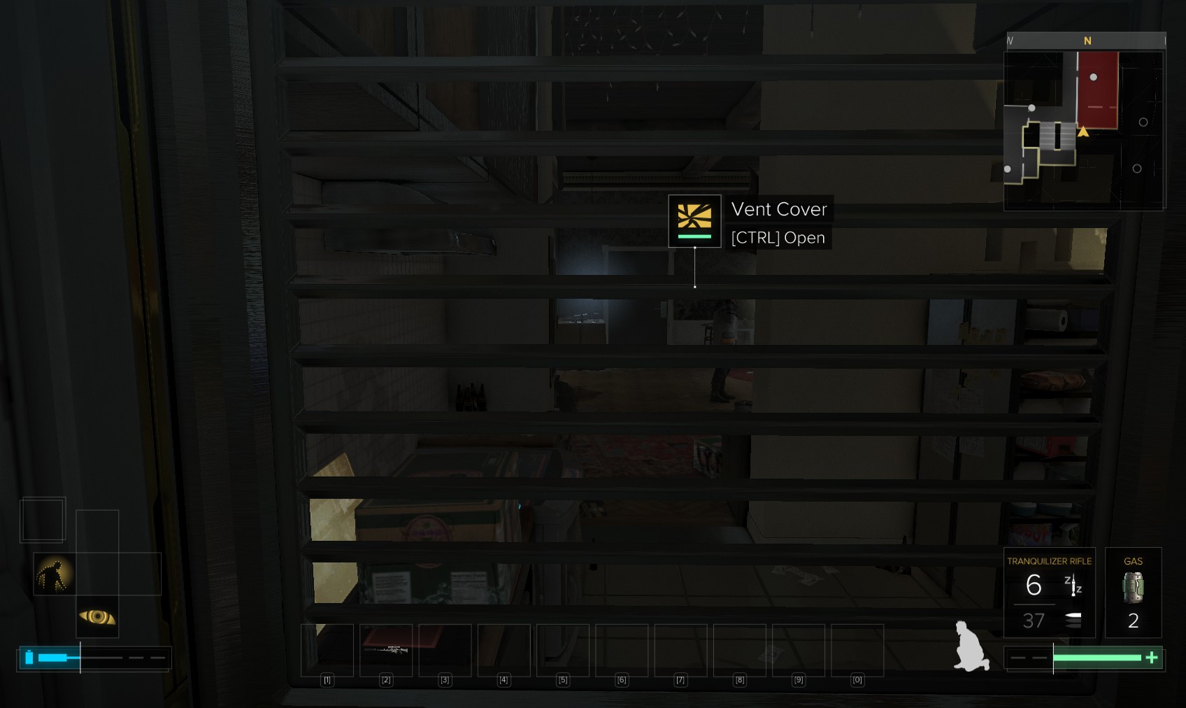 72. Take out the thug at the top of the stairs. You could also have attracted his attention downstairs by chucking stuff around.