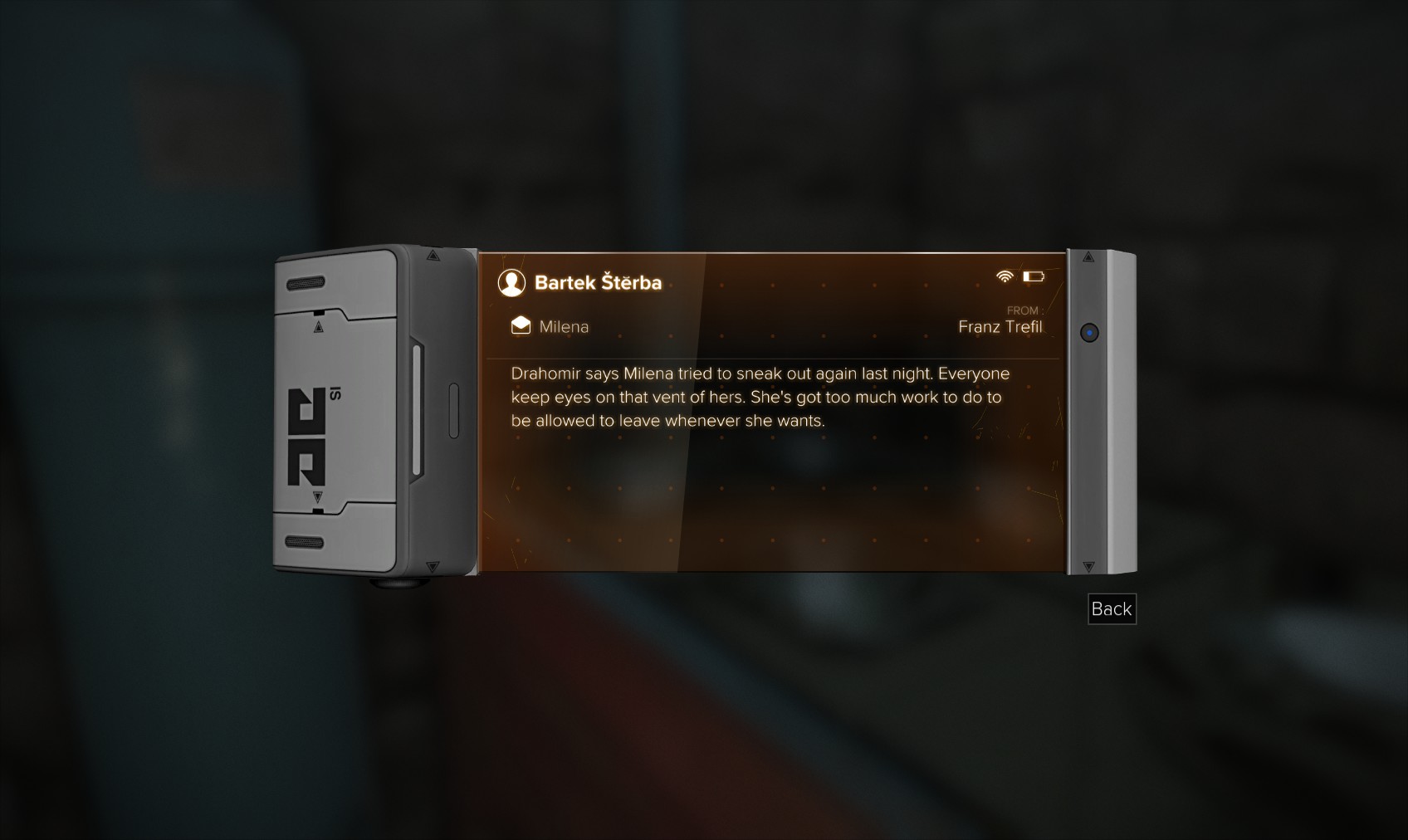 117. It won’t take you long to notice that most of your augmentations are not working. You’ll need to find another way to break through…whatever it is. Hunt around and spot this pocket secretary in the toilet area near the rear of the compound.