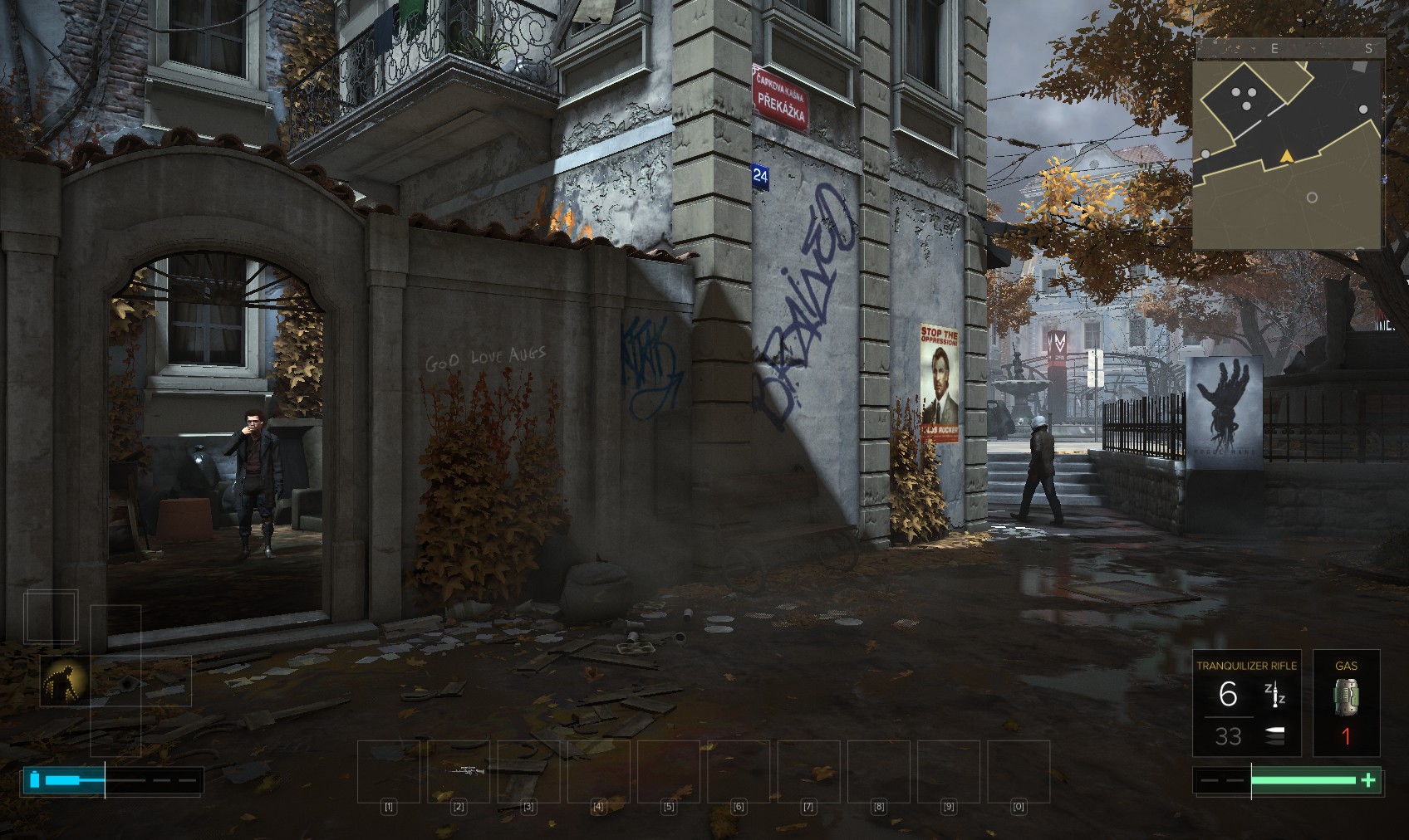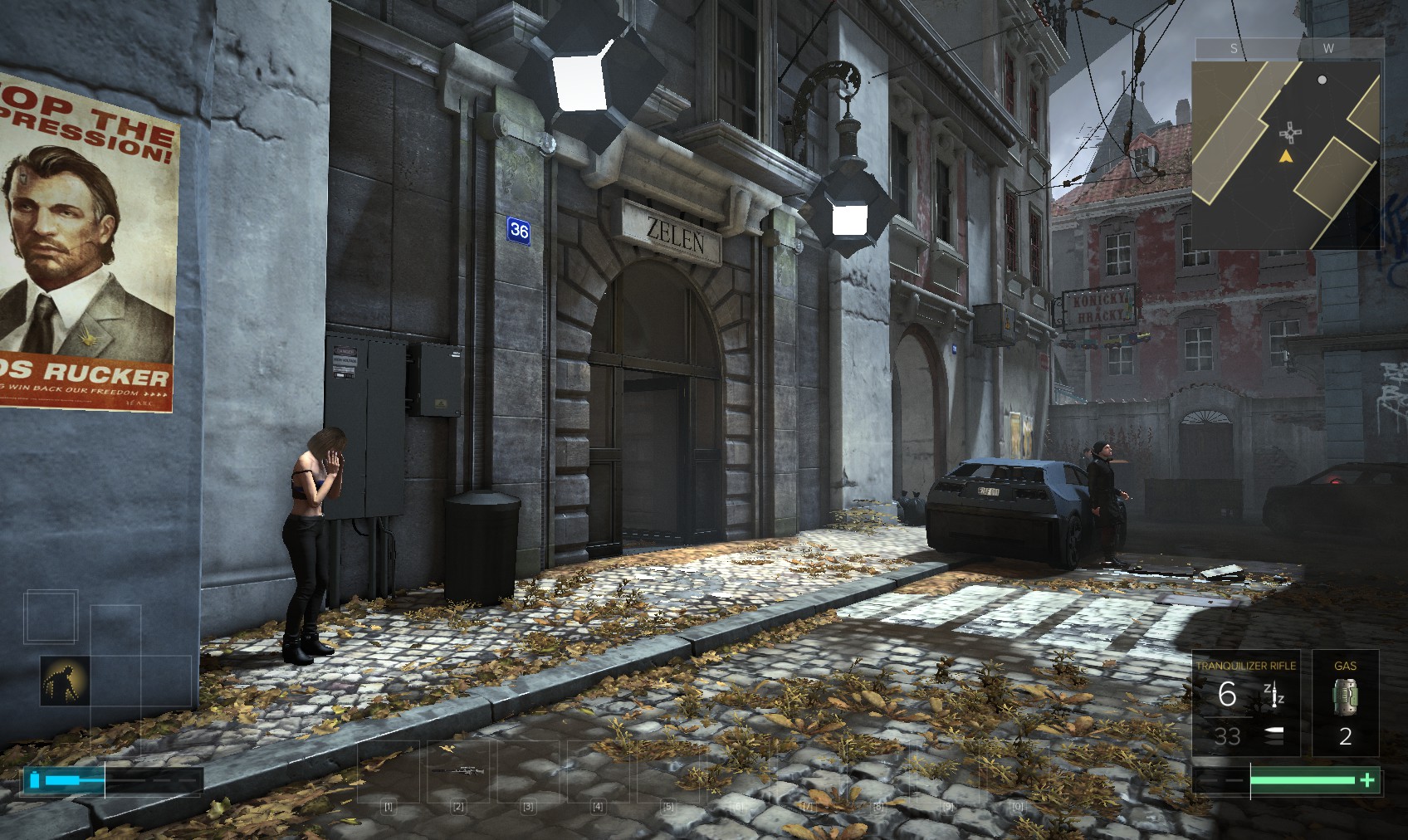 80. Stand back and observe the firefight, then right opposite the police checkpoint is this place. Go in and downstairs to chat with Irenka Bauer.