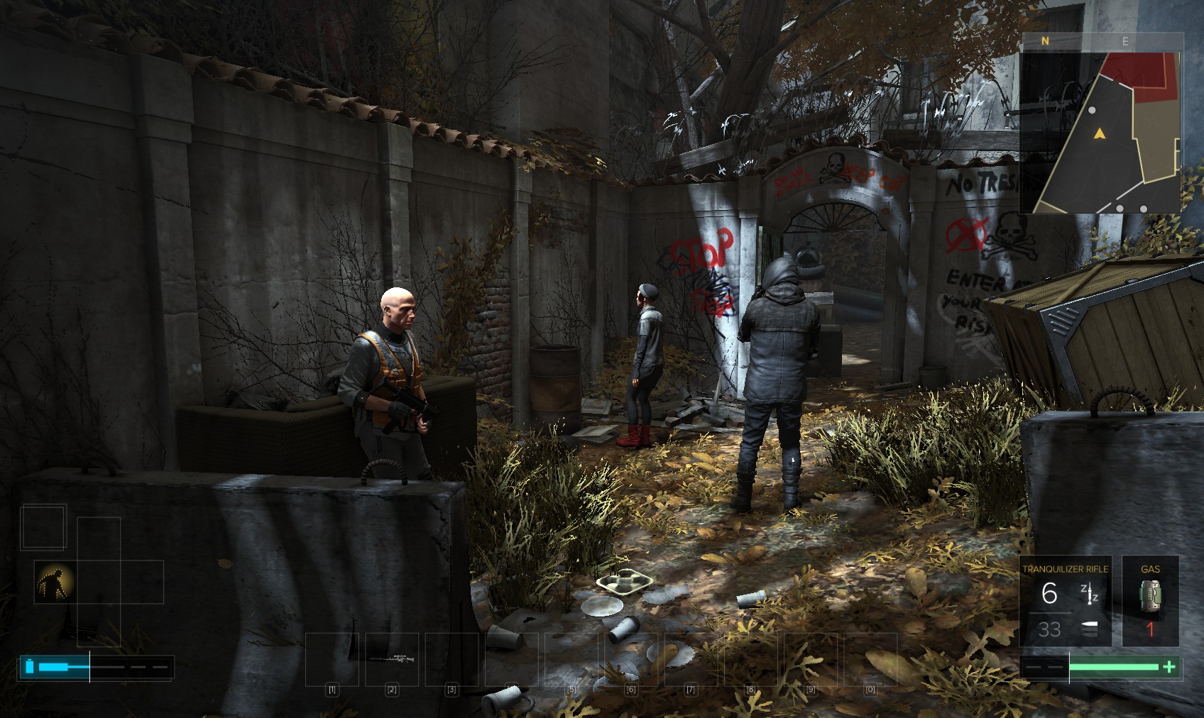 safe if you failed to hack it and grab the goodies. Finally go out the way you came in - quietly! Even if you knocked everyone out inside the area, the thugs outside will still get hostile if they see you.