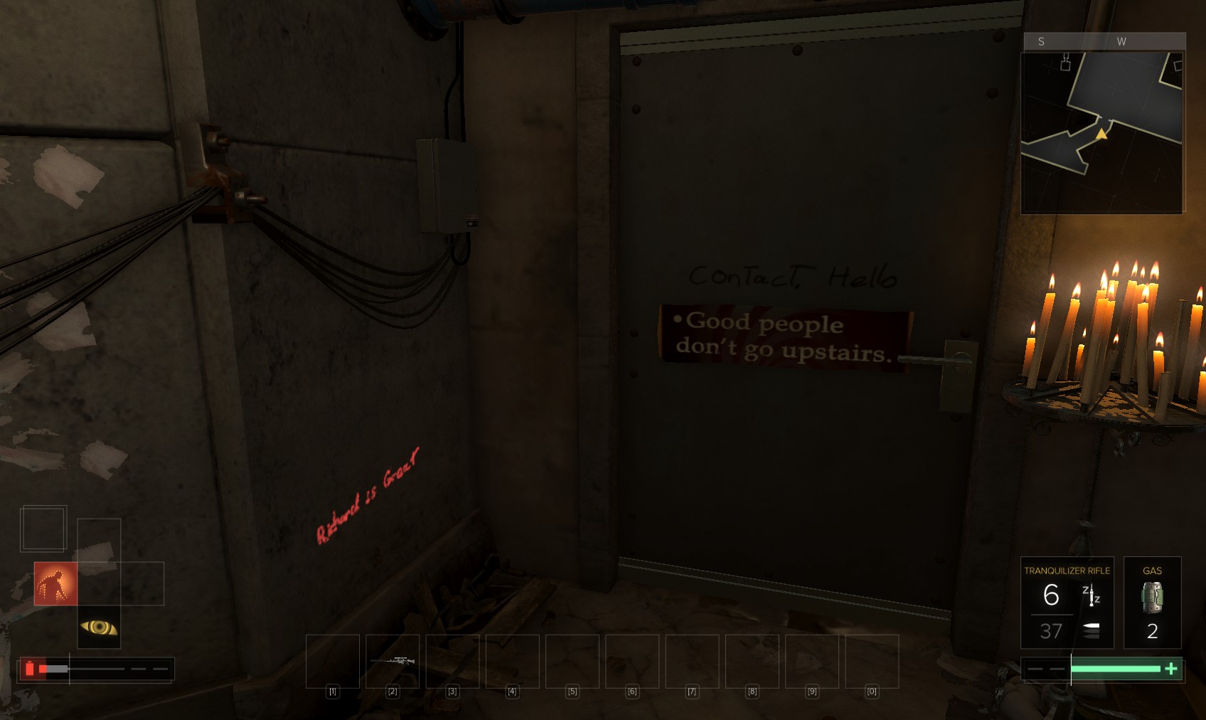 More clues about Richard and a warning. This looks ominous. As you open the door, dialogue with Richard begins.
