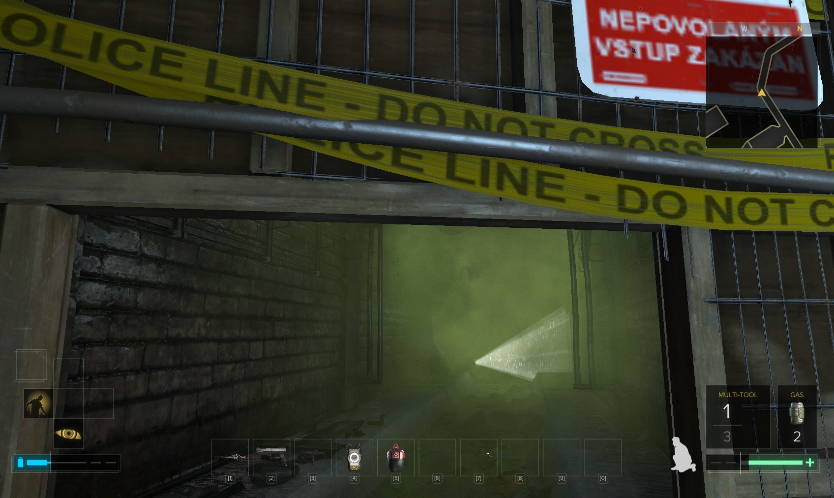 112. You can crawl through the pipe to avoid the gas for now if you haven’t got the rebreather. You can just about switch off the gas if you’re at full health and are quick, though.