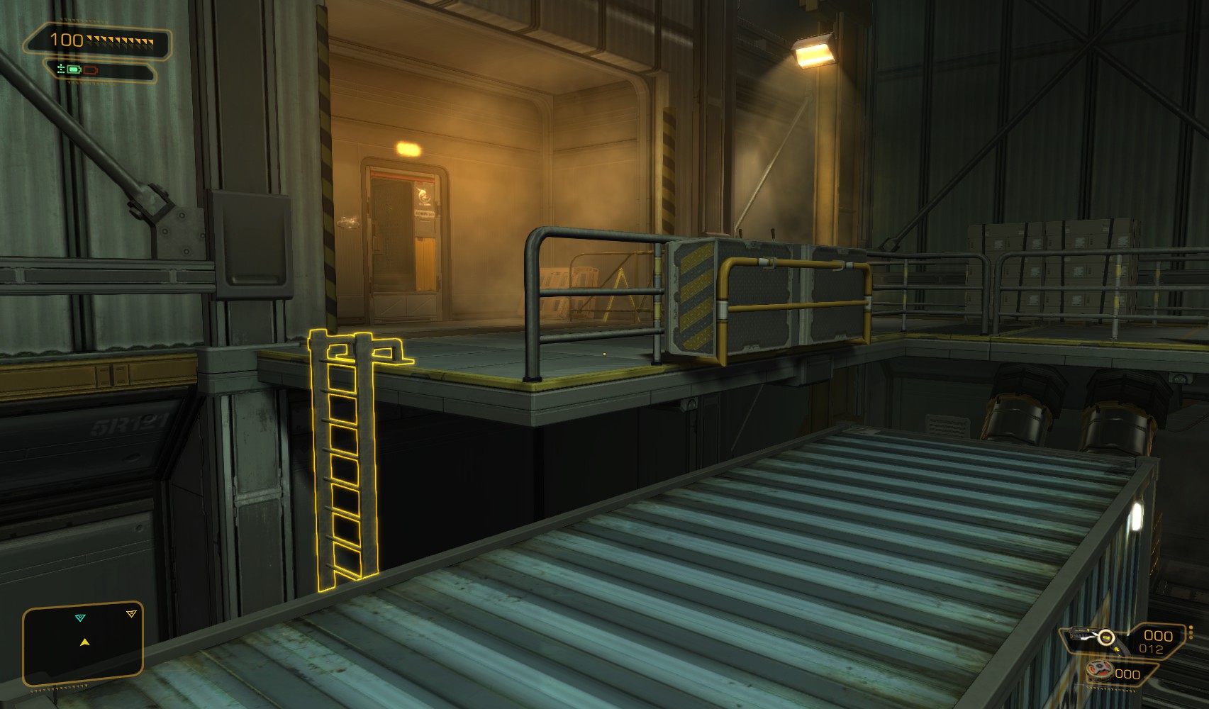 69. This being Deus Ex, a third hidden option exists. Move this heavy crate to expose a vent. Head in for a 200XP explorer bonus.