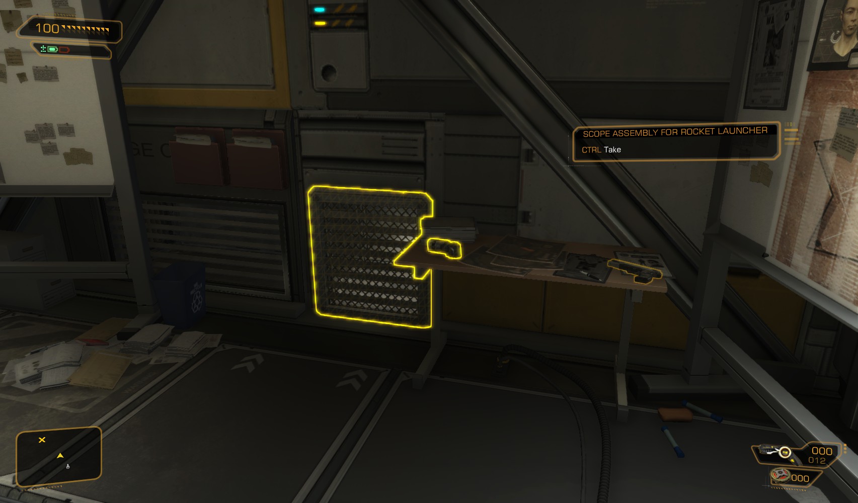 23. Another vent brings you here, which turns out to be Keitner’s office. The level 3 PC gets you 200XP. Hunt around for credits and ammo, and a damage upgrade beneath the desk.
