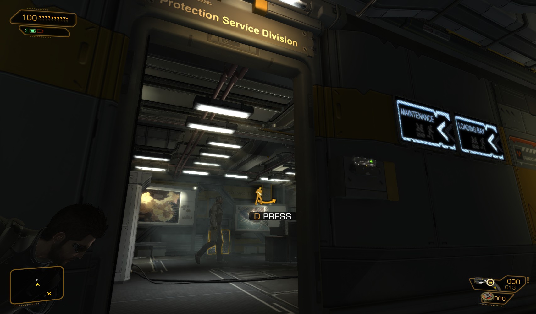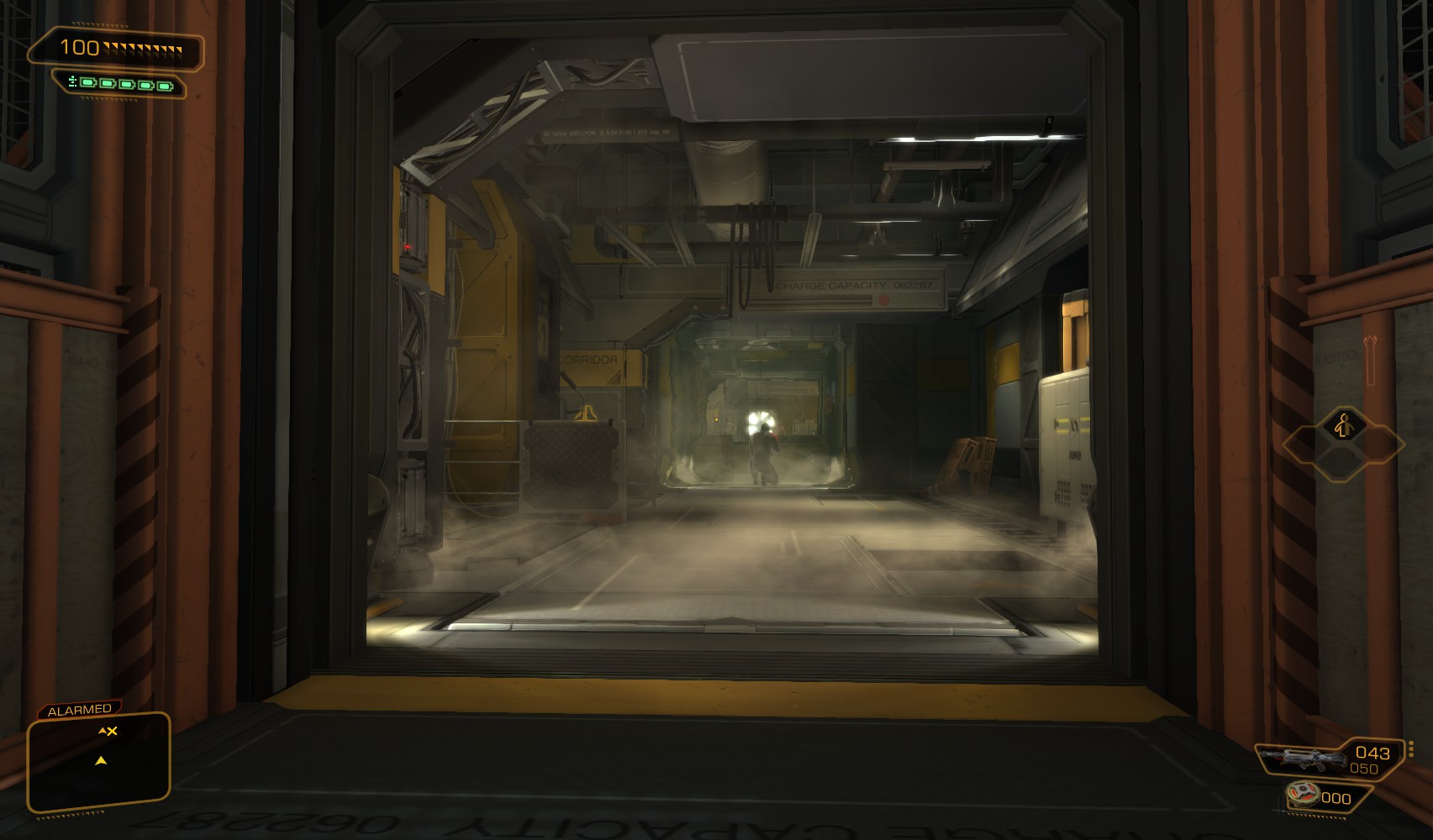 84. You come out behind another guard. A second is in position beyond him, too, but I leave him alone as it means walking past the main door to the loading bays, guarded on the other side.
