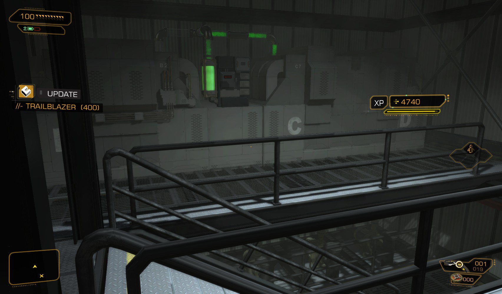 6. Head further up the corridor to find this vent almost hidden behind a crate. Go through for a 100XP traveller bonus. Up a ladder you’ll find a damage upgrade. Up a second ladder is a credit chip and another vent.